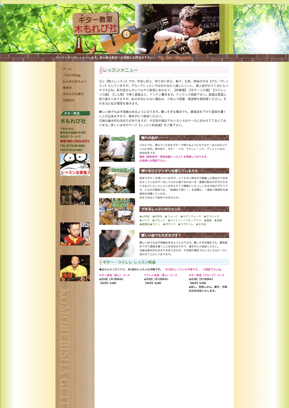 ギター教室 木もれび社様のホームページを制作いたしました。