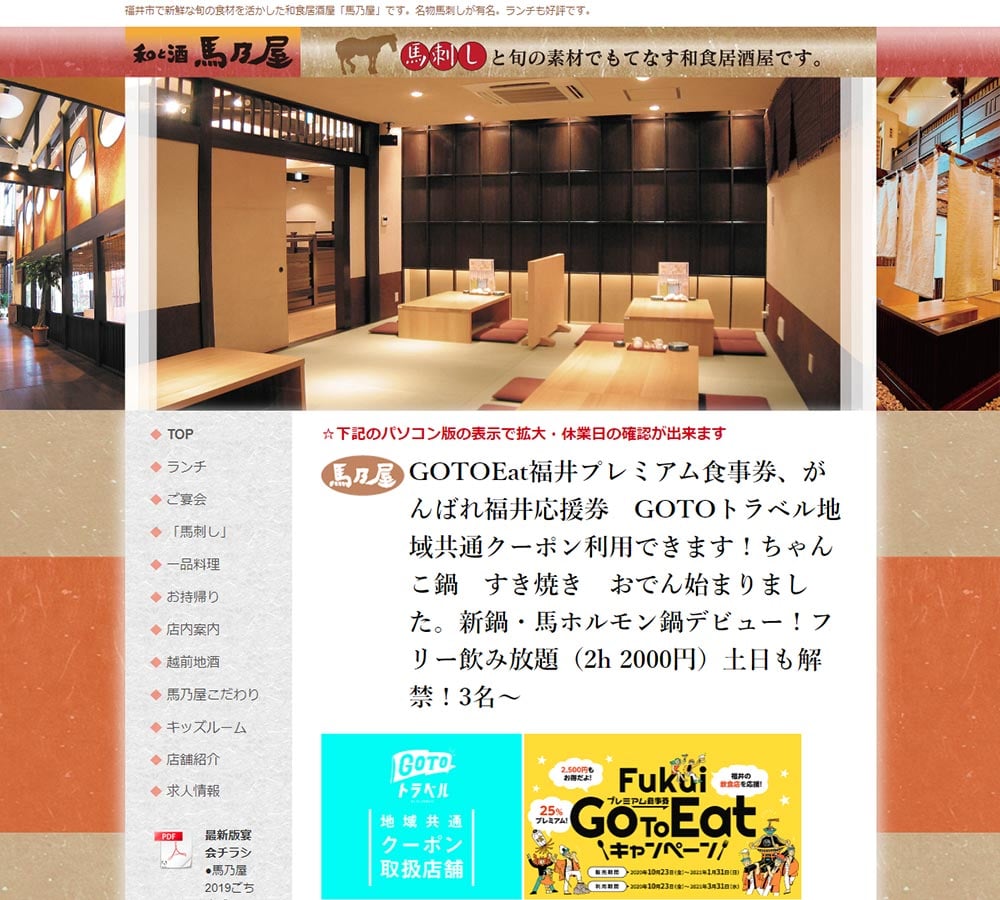 和と酒 馬乃屋様のホームページを制作いたしました。